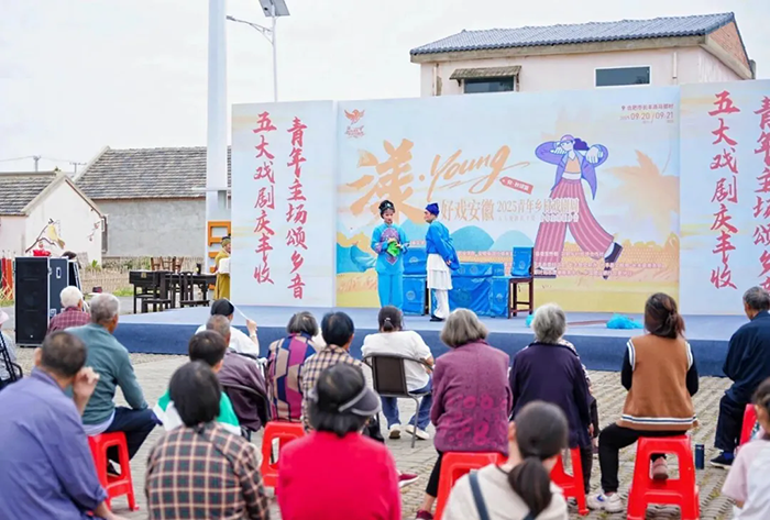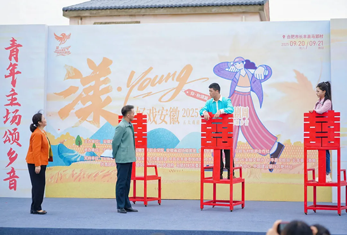 稻浪翻金、戏腔绕梁。9月20日—21日,由省文联主办,省剧协、安徽艺术职业学院、省政协徽黄室、长丰县委宣传部等联合承办的“好戏安徽——漾·Young”2025青年乡村戏剧周第三季“仰·秋颂”,在合肥市长丰县杨庙镇马郢村全景上演。徽剧、黄梅戏、庐剧、泗州戏、皖南花鼓戏——安徽五大代表性剧种首次同台庆丰收,以“青年主场+村民主角+市集赋能”的融合范式,把文化惠民做到田间地头,用文艺“活水”激荡乡村振兴“一池春水”。