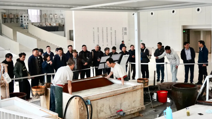 8日上午,恰逢“泾上丹青——2025·写意画作品展(中国画)”在安徽泾县宣纸博物馆开幕,采风团一行参加了开幕式并参观展览。展览作品题材多元,内涵丰富,既有对传统笔墨的坚守,也有对时代风貌的展现,让采风团成员感受到,在宣纸的承载下,水墨交融的艺术感染力和中国画在新时代的创新活力。在宣纸文化园,大家观看了宣纸制作全过程和三丈三宣纸制作工艺,了解了勤劳智慧的泾县人民在千百年传承中,创造出的人类非物质文化遗产。