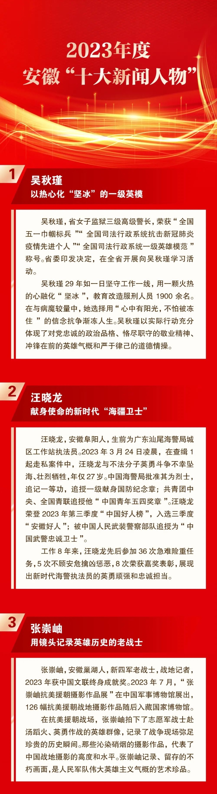 “新时代 新徽班 新气象”安徽精品剧目展演活动、张崇岫入选2023年度安徽“十大新闻”“十大新闻人物”