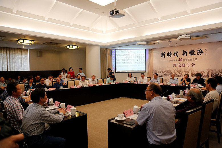 开幕式后召开了理论研讨会。20余位国内著名美术家、书法家、评论家等参加,对此次展览及新徽派美术书法等艺术的传承发展进行了座谈研讨。