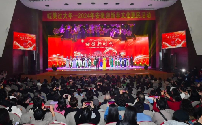 红梅绽放,情系江淮;经典荟萃,敬献基层。1月19日晚,“梅绽新时代”——中国剧协梅花奖艺术团“送欢乐 下基层”走进安徽慰问演出在安徽大剧院精彩上演。艺术团云集著名艺术家,奉献了一场丰盛的文艺盛宴。全省道德模范代表、在肥企业职工代表、医护人员代表、劳模代表、基层文艺工作者代表、进城务工人员代表、教师代表等1000多名一线工作者现场观看演出。