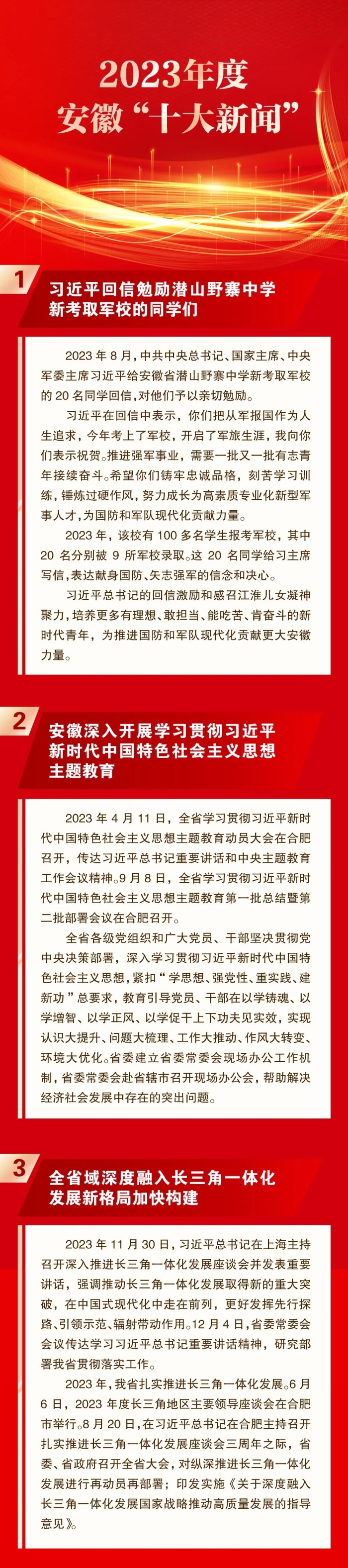 1月4日,由安徽日报社主办的2023年度安徽“十大新闻”“十大新闻人物”评选揭晓。