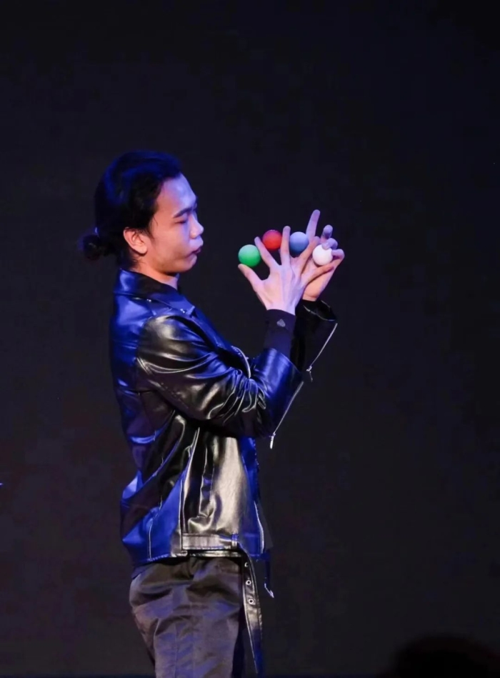 韩鑫表演的《幻彩》魔术节目,是舞台经典手彩球类魔术,在道具上增添色彩的变化,使其更具观赏性的同时,再融入棒与环的魔术元素参与其中,用酷炫的表演形式来演绎,彰显出魔术艺术青春魅力。