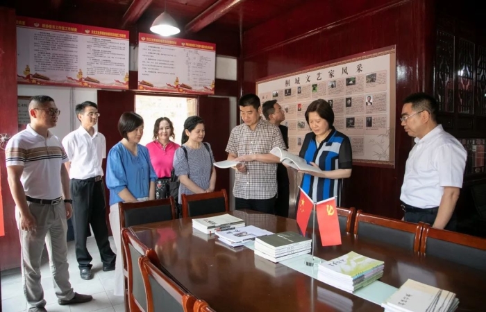 6月9日,省文联党组书记、副主席、书记处第一书记何颖一行赴桐城就基层文联工作开展调研。安庆市副市长王赵春,安庆市文联党组书记桂治华,桐城市委常委、宣传部部长殷锐,桐城市副市长金天柱等先后陪同。