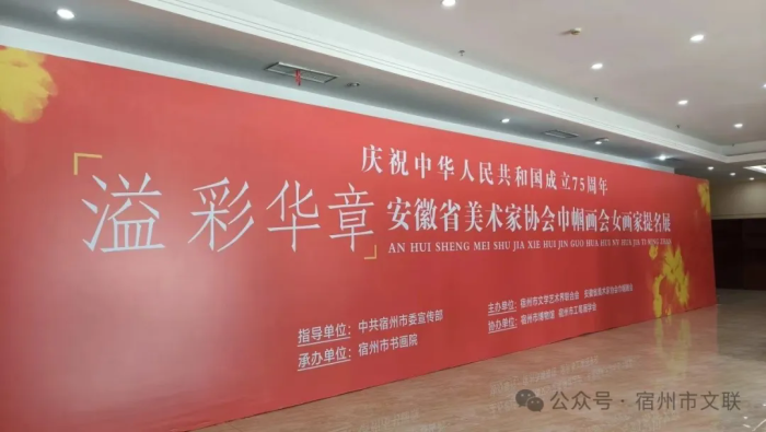 9月25日,由宿州市委宣传部指导,宿州市文联、省美协巾帼画会主办的“溢彩华章”庆祝中华人民共和国成立75周年安徽省美术家协会巾帼画会女画家提名展在宿州市博物馆开幕。全省巾帼画家相互学习、相互交流、相互借鉴、共同进步,用艺术的形式表达对祖国的热爱和对美好生活的向往,为新中国成立75周年深情献礼。