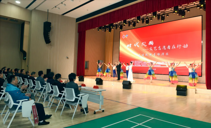 金色十月瑞光扬,华夏欢腾谱新章。在党的二十届四中全会胜利闭幕之际,10月24日,省文联文艺志愿小分队来到位于合肥市玉兰大道与创新大道交口西南角的G60生物医药产业园,开展“时代风尚”——文艺志愿者在行动走进肥西专场演出,为300余名产业园广大干部职工和基层群众送上了一场“文化盛宴”。省文联党组成员、书记处书记刘涛,省文艺志愿者协会主席邝实等参加。